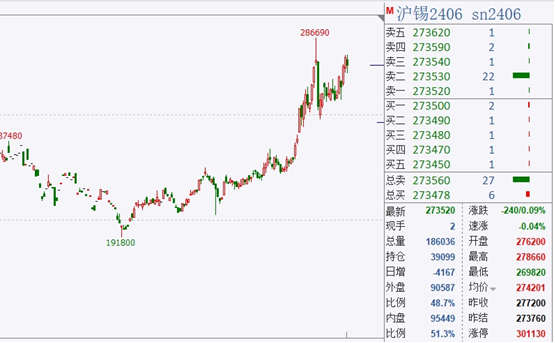 近期,滬錫期貨連續創下近2年新高,市場小金屬概念逐漸火熱興趣。截至昨日下午收盤,滬錫報273500元/噸,微跌0.09%。